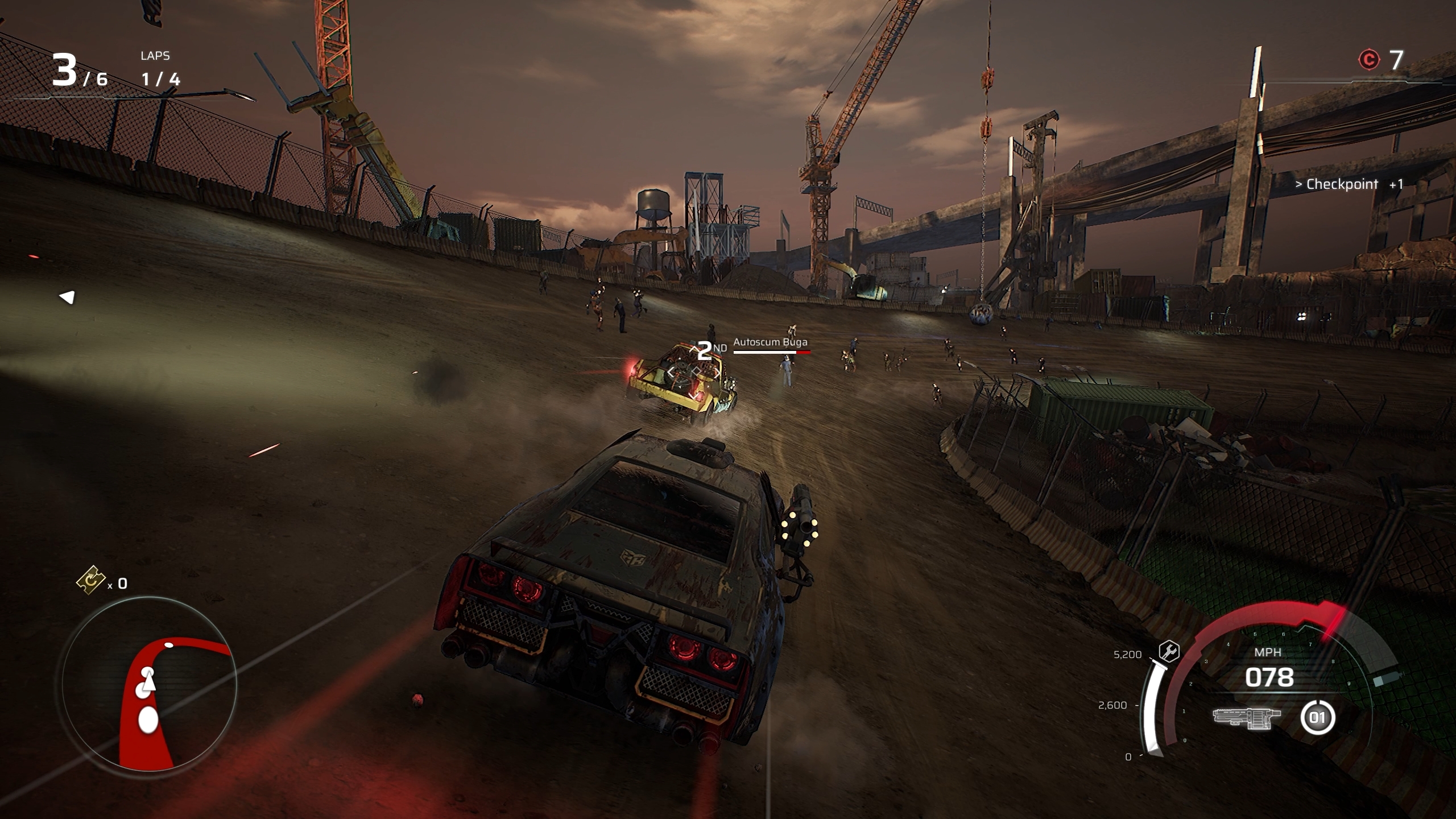 The pedestrians are replaced by zombies, which you can run over for boost or shoot to cause damage to opponents. You’ll also have barrels scattered about that you can use to your advantage.